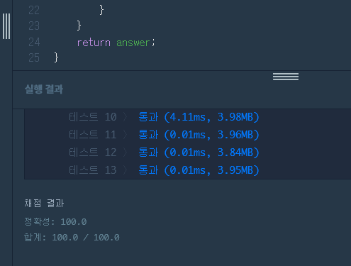 주어진 갈색 격자의 개수와 같게 나왔을 경우 m,n 값을 answer에 담아 리턴하면 된다.