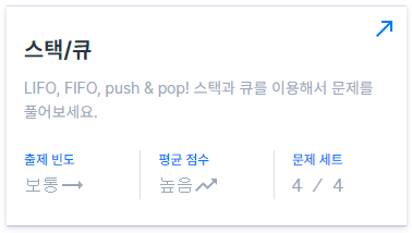 고득점 kit에 있는 스택/큐 문제들도 해결하기 까지 어느정도 생각이 필요했지만 전반적으로 어렵지 않게 풀 수 있었다.