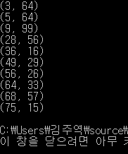 x,y를 랜덤으로 생성한 뒤, 10쌍을 pq에 push해주었다.