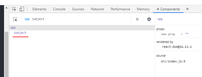 Components에 들어가니 App에 Subject라는 하위 컴포넌트가 추가 된 것을 볼 수 있었다.