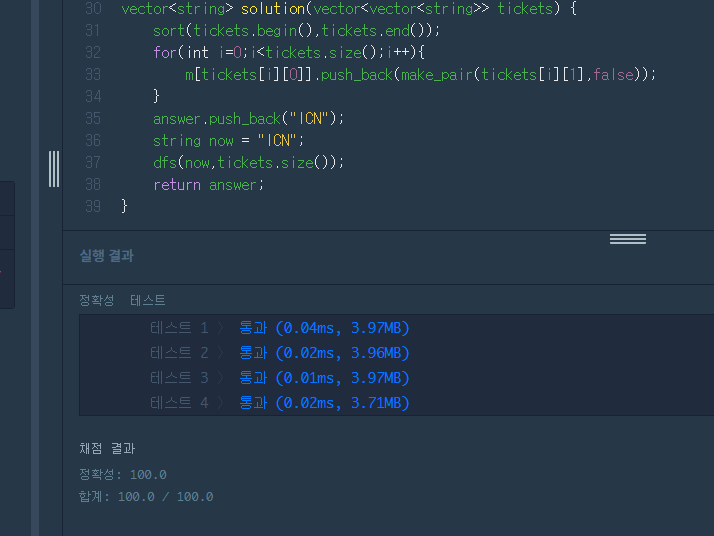 answer에는 모두 방문 경로가 담겨져 있기 때문에 dfs를 그대로 모두 전부 리턴해버리면 된다.