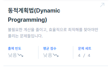 동적계획법 문제는 대체로 코드가 짧지만 점화식을 세우기 어렵다는 특징이 있다.