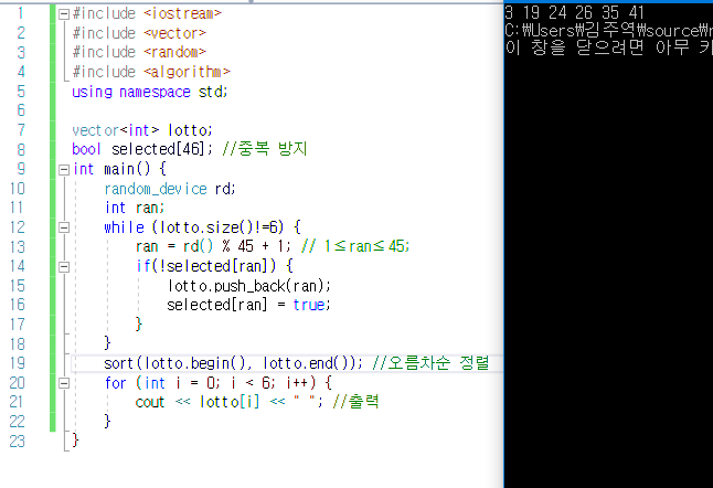 sort(lotto.begin(), lotto.end()); //오름차순 정렬