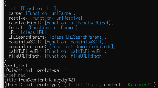 POST방식으로 데이터를 전송했기 때문에 /post_test뒤에 query string이 붙지 않는 것을 볼 수 있다.