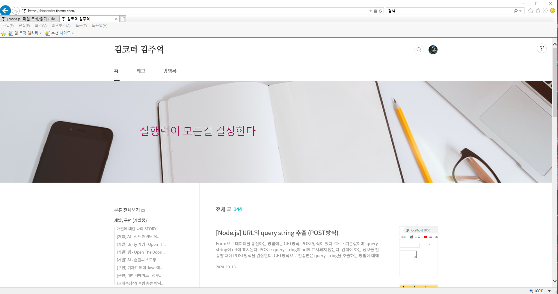 웹사이트에서 redirection 링크를 누르면 이 블로그의 홈으로 이동한다.