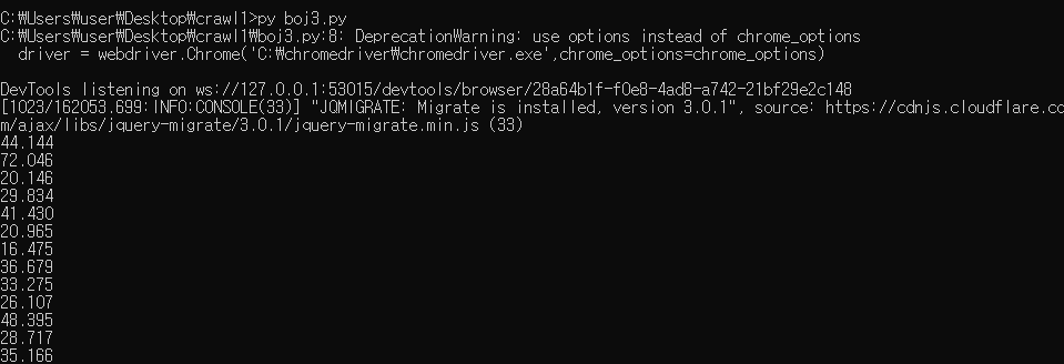 boj3.py 파일을 실행하니까 여러 문장이 뜬 뒤 5초가 넘어서야 결과가 출력되었다.
