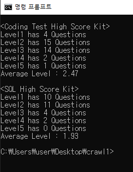challengelinks 배열을 생성하여 코딩 테스트 고득점 Kit, SQL 고득점 Kit의 url을 넣어주고 이들 각각의 모든 카테고리 링크들을 크롤링으로 찾아서 links 배열에 따로 모아두었다.