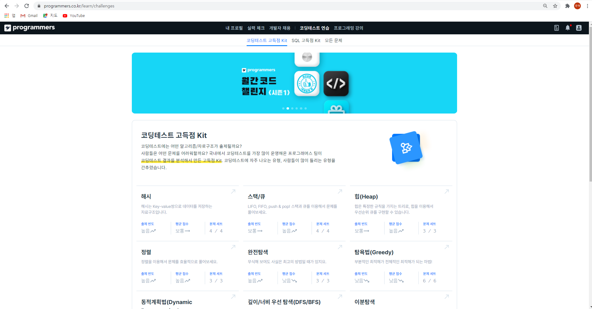 /learn/challenges 로 접속했다. (programmers.co.kr/learn/challenges)