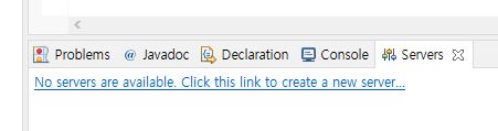그럼 아래와 같이 Server 메뉴가 생성 되는데, 아직 아무 서버도 없다는 의미의 문구가 나온다.