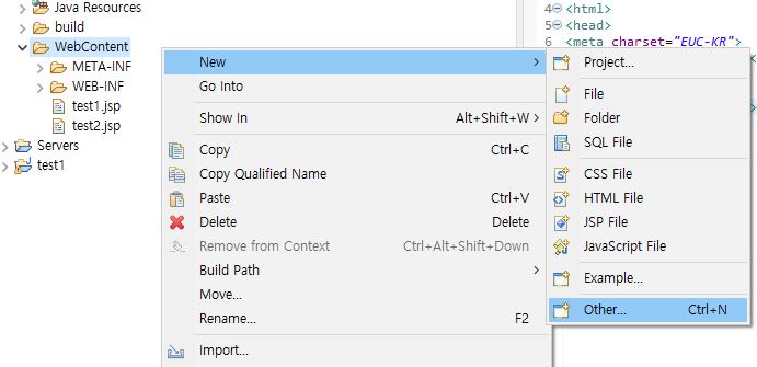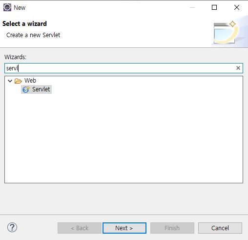 1) WebContent -> New 에서 Servlet이 없다면 Other로 들어가서 검색하면 된다.