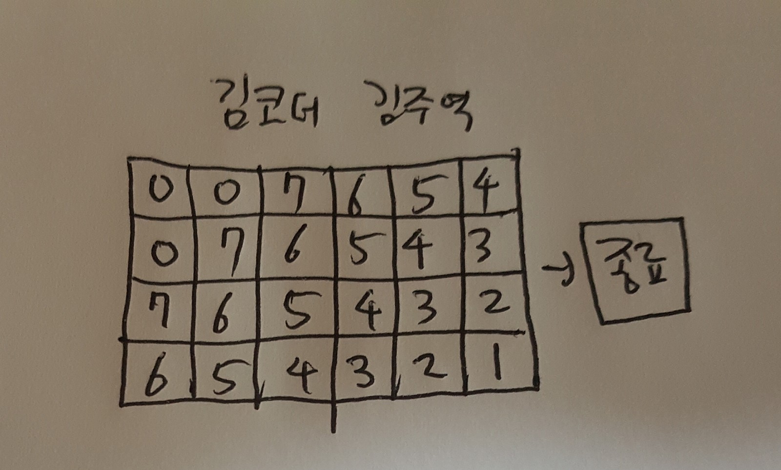 아래 표는 예제 입력 2 케이스의 내가 작성한 코드에서 time 배열이다.