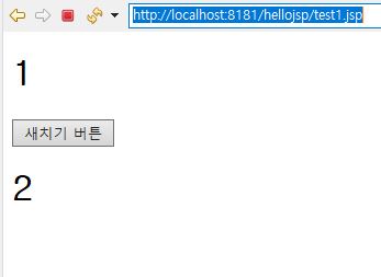 test1.jsp의 두 <h1> 태그 사이에 test2.jsp 페이지를 삽입한 모습을 볼 수 있다.