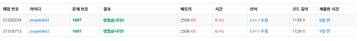 본인은 초기 시간을 1로 설정했기 때문에 time배열의 k(동생좌표)인덱스값 time[k] 에서 1을 뺀 값이 정답이다.