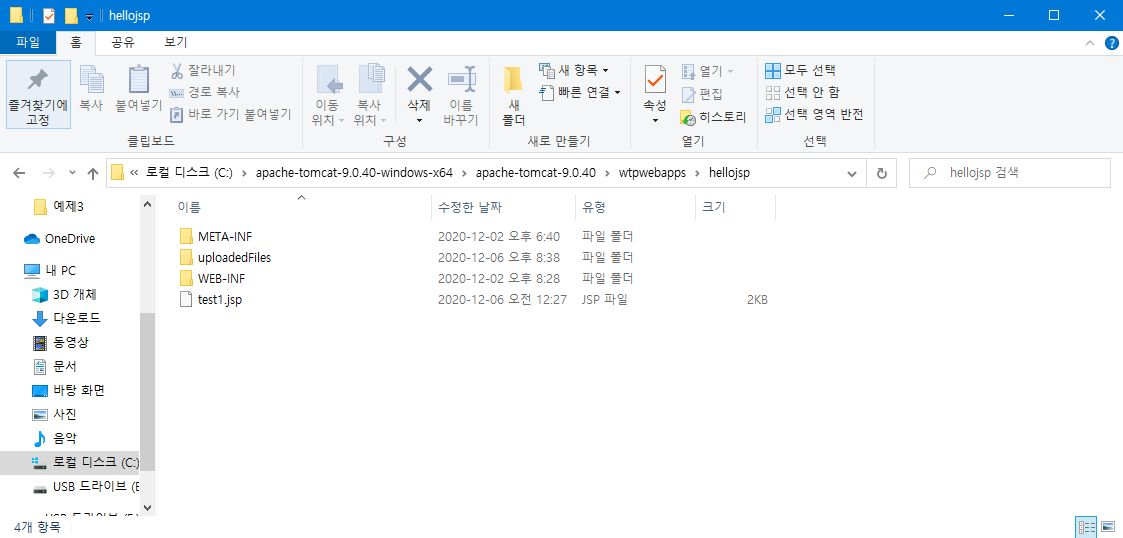 본인의 경우 uploadedFiles 폴더와 uploadCheck.jsp 파일은 같은 디렉토리에 두었다.