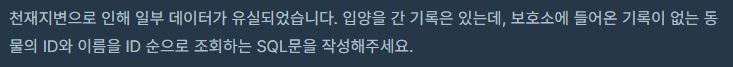 해설 : ANIMAL_INS, ANIMAL_OUTS 테이블에 있는 동물들은 각각 보호소에 왔던 동물들, 입양 간 동물들이다.