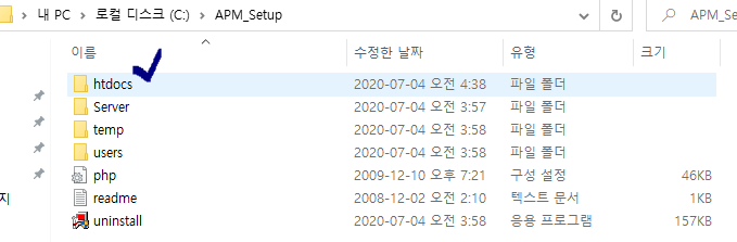 APM_SETUP 폴더 안에 하위 폴더로 htdocs가 있지 않은가?