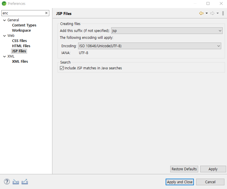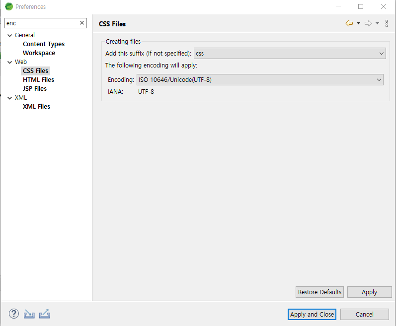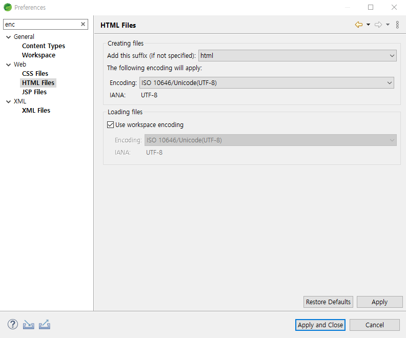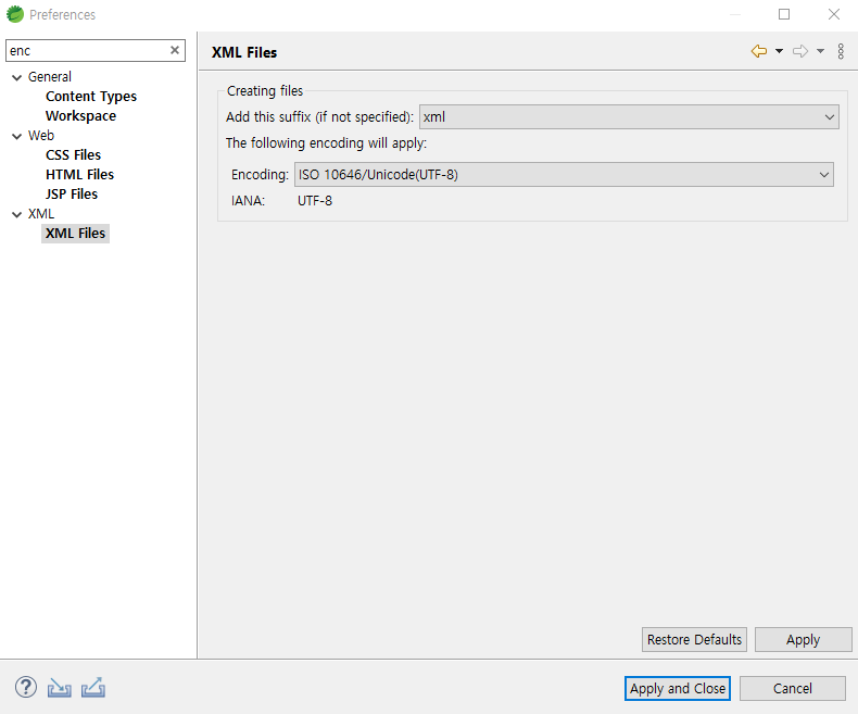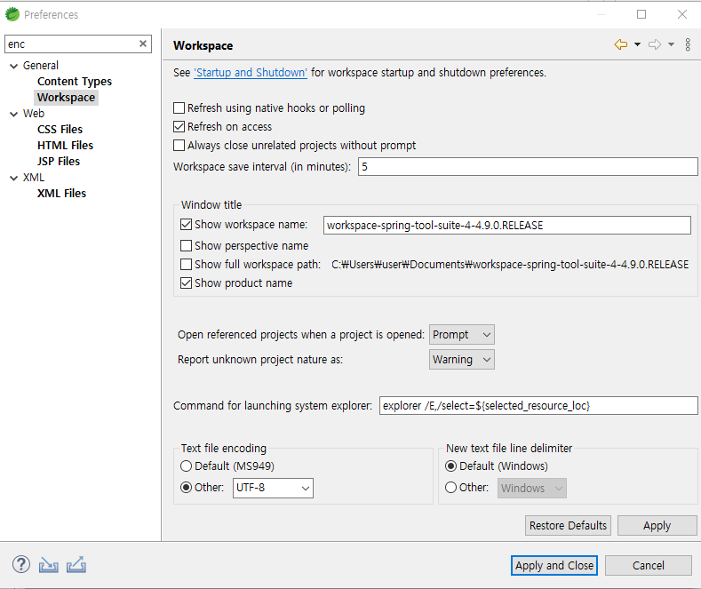 상단 메뉴의 Window -> Preferences 로 들어가서