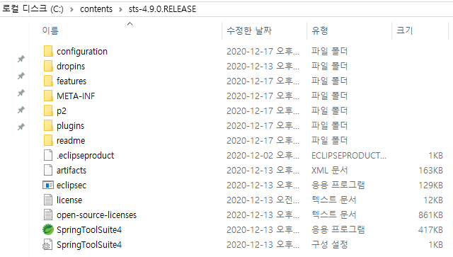 그리고 초록 아이콘을 가지는 SpringToolSuite4를 실행시키면 된다.