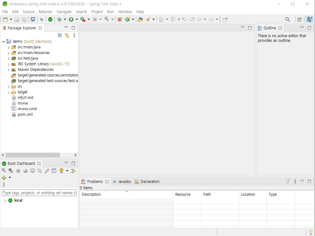 Eclipse 기반으로 설치하였다면 Eclipse와 똑같은 작업창이 뜰 것이다.