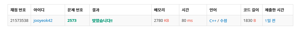 4. 여전히 1덩어리일 경우 과정2번으로 이동, 2덩어리 이상일 경우 정답 출력