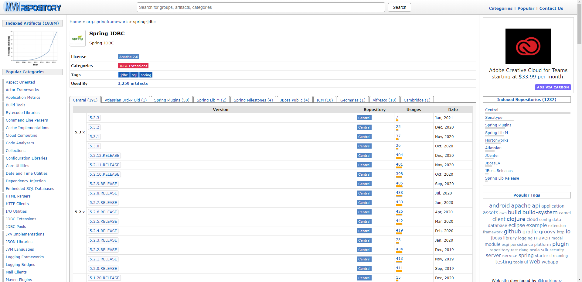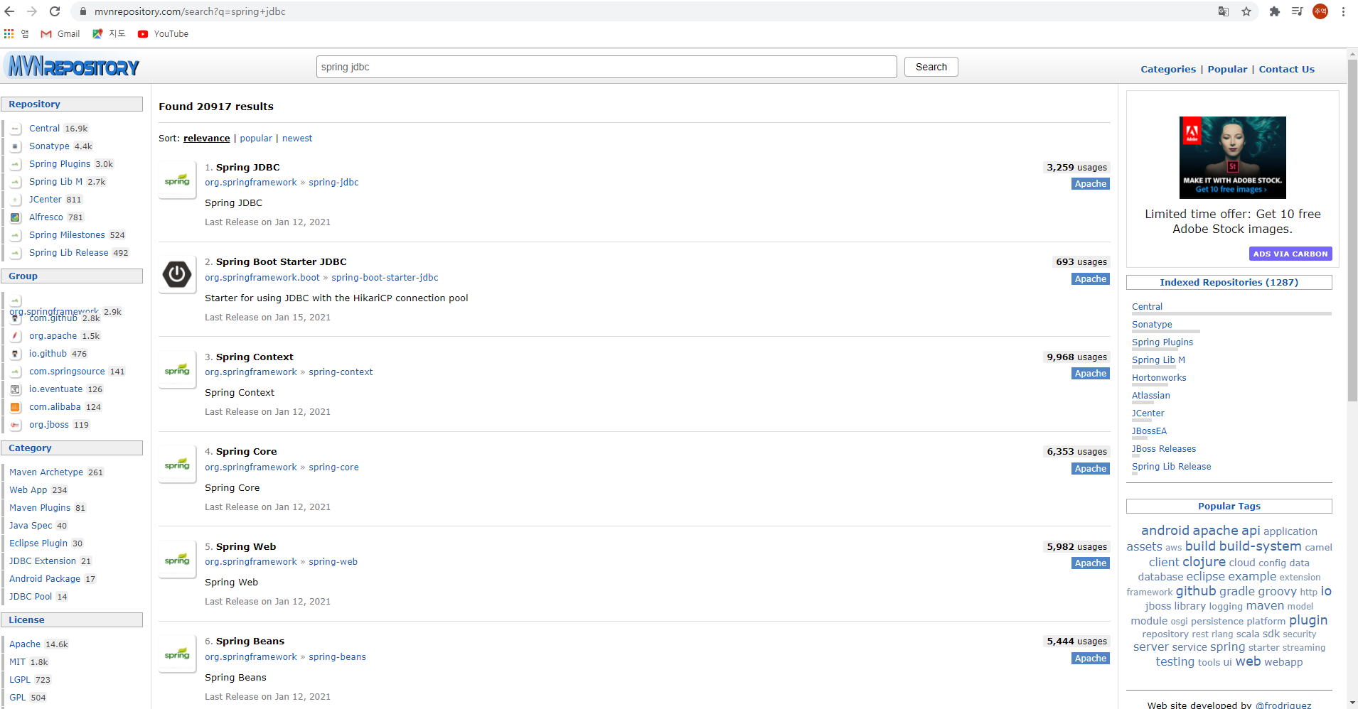 예를 들어 Spring JDBC를 검색해보기로 한다.