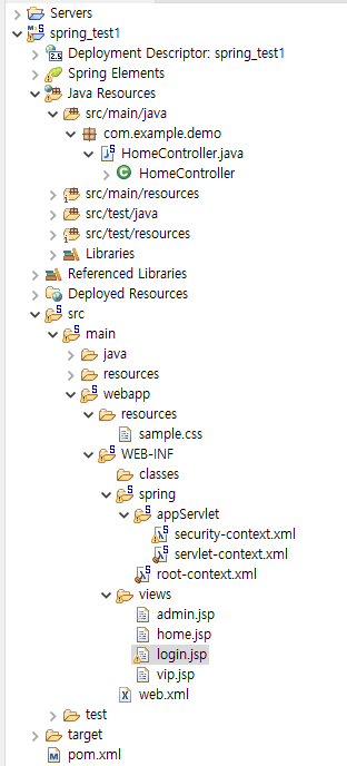 단, 이번에는 다음과 같이 security 태그 방식을 사용했다.