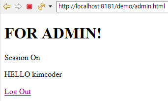 /demo/admin.html로 요청하여 로그인하고, 관리자 페이지로 접근하고, 로그아웃까지 마쳐보자.