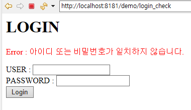 지금까지는 로그인에 실패 했을 때 다음과 같은 에러메세지가 출력되었다.
