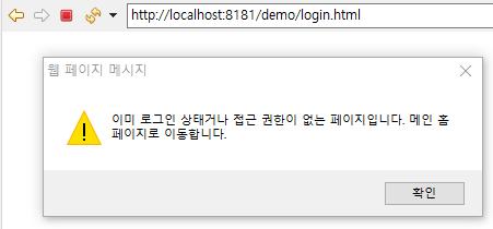 alert("이미 로그인 상태거나 접근 권한이 없는 페이지입니다. 메인 홈페이지로 이동합니다.");