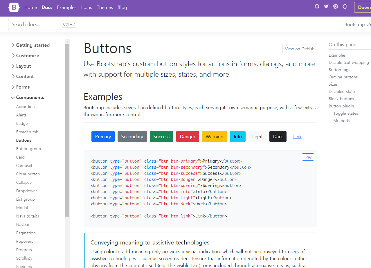게다가 Bootstrap 공식 웹사이트에서 적용 코드와 각종 예제까지 제공한다.