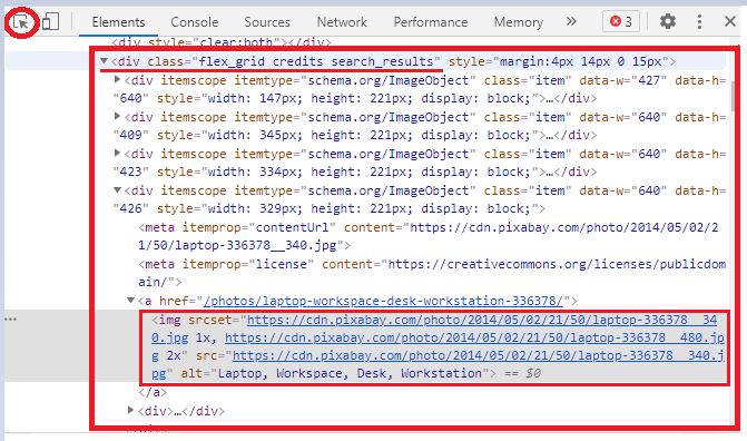 그런데 친절히도 pixabay에서 이런 문제를 고려했는지, 중간 이미지부터는 img태그에 data-lazy-srcset이라는 속성이 존재했다. 동적 크롤링 없이도 이 속성에 접근하여 이미지 경로를 추출할 수 있는 것이다.