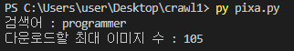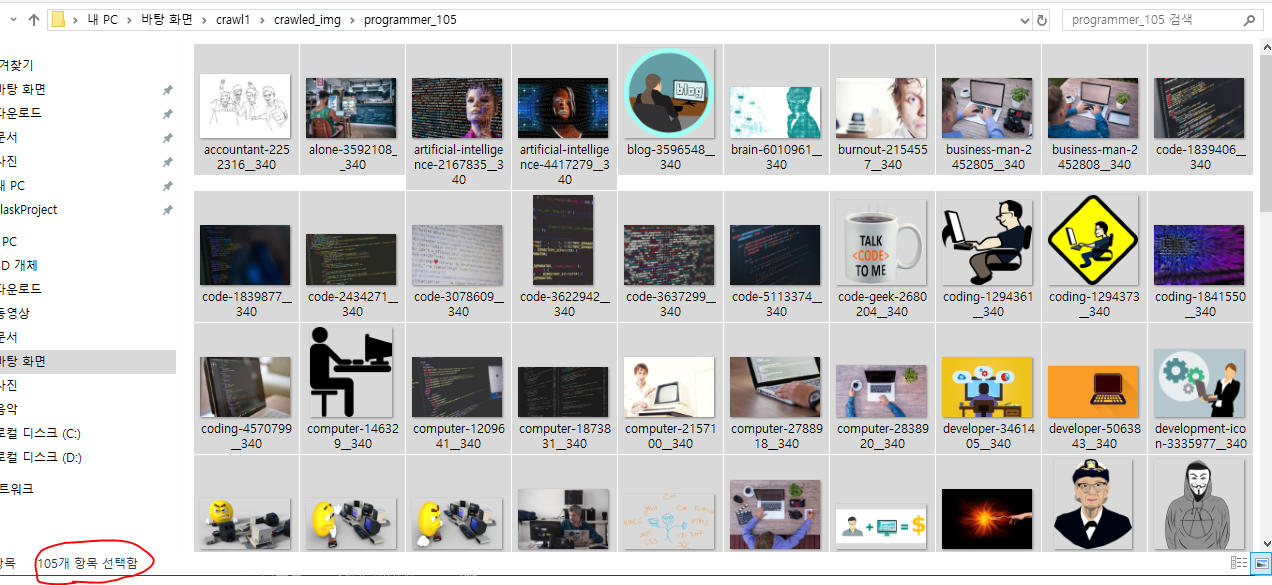 programmer을 검색하여 나온 이미지 105개를 얻어올 것이다.