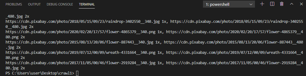 초반 이미지 데이터만 정상적으로 추출이 된 것을 보아, 중간 이미지부터는 웹 사이트에 아직 로드가 안되어서 추출이 안된 것이었음을 알 수 있었다.