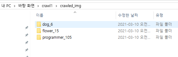 실행마다 crawled_img 폴더 안에 결과물이 차곡차곡 쌓인 모습이다.