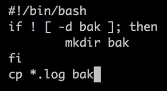 2줄 ~ 4줄 : bak이라는 디렉토리가 존재하지 않는다면 생성해준다. if문은 fi로 끝낸다.