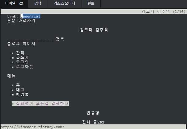 kimcoder.tistory.com을 입력해서 필자의 블로그에 접속해보았다.