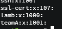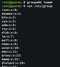 teamA 라는 그룹을 생성하고, /etc/group에 있는 group목록을 조회하여 teamA 그룹이 잘 생성되었는지 확인한다.
