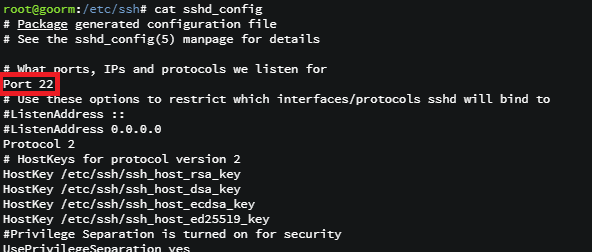/etc/ssh/ 디렉토리의 sshd_config 파일에서 확인할 수 있으며, SSH의 기본 포트번호는 22번이다.