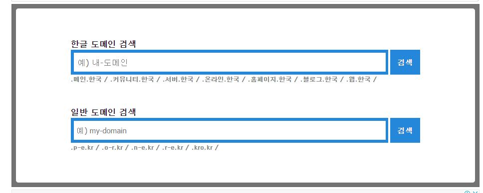 이 사이트 역시 처음에는 특정 도메인이 사용중인지 여부를 검색해야 한다.