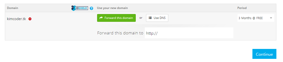 Forward this domain, Use DNS, Period라는 총 3가지 옵션을 설정할 수 있고