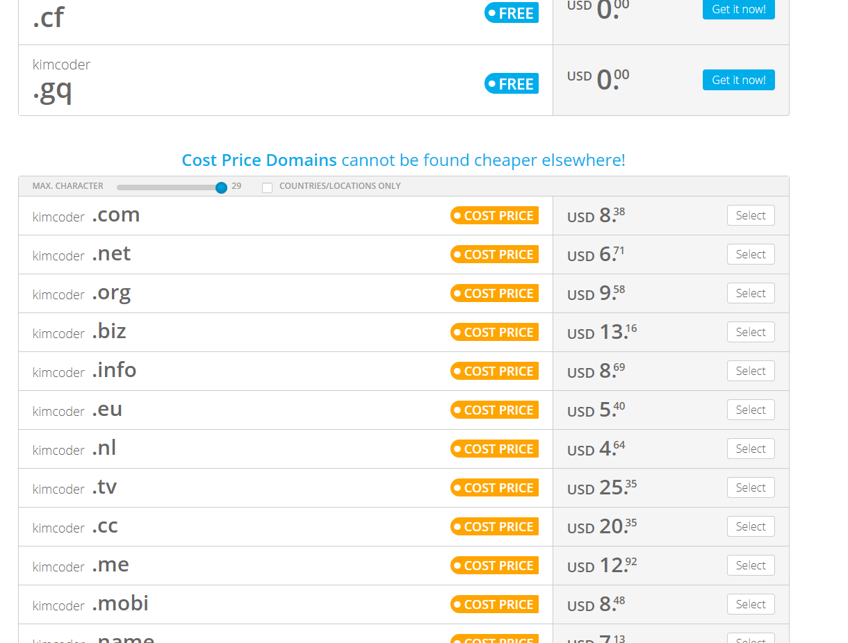 조금 더 내려보면 유료인 도메인 종류들도 확인 가능하다.