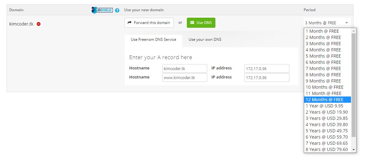 마지막으로 Period는 등록 기한을 설정하는 옵션이다. 12개월까지는 무료인 것 같다.
