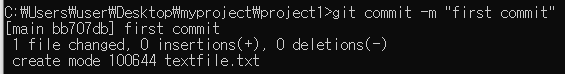 먼저, cmd에서 .git 폴더가 있는 디렉토리로 이동한다. 그래서 project1 디렉토리로 이동했다.
