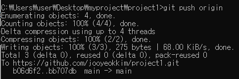최종적으로 Github에 변경사항을 저장하는 명령이다.