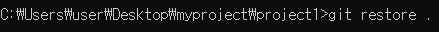 그런데 그 아래줄에 있는 git restore 명령은 무엇일까? 이 명령이 바로 저장전 상태로 되돌리는 명령이다.