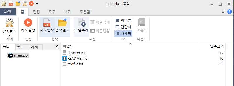 명령을 실행했더니 이렇게 main이라는 이름의 zip파일이 생성되었고,