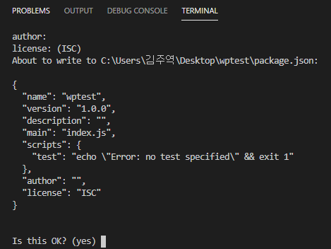 이렇게 package.json이라는 파일이 생성된다.