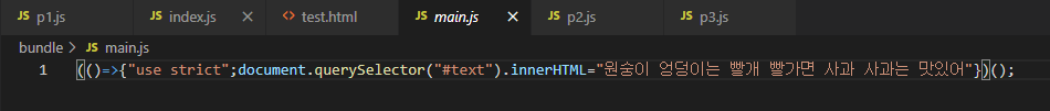 이렇게 bundle 디렉토리에 생성된 main.js이 bundle 파일이다.