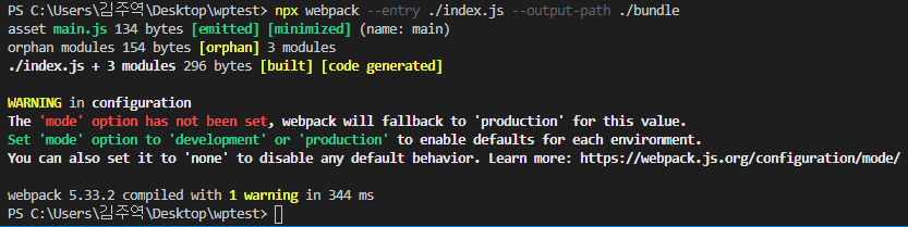 npx webpack --entry [Entry file 경로] --output-path [bundle 파일을 생성할 경로]