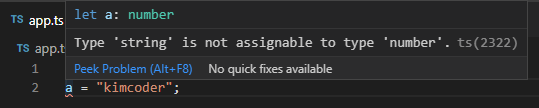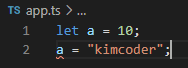 a를 number형으로 한 번 확정지었기 때문에 문자열로 값을 바꾸면 오류가 표시되는 모습을 볼 수 있다.